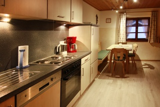 Die Küchenzeile ist ausgestattet mit Kühlschrank (Gefrierfach), Kochplatte Backofen, Spülmaschine, Kaffeemaschine, Wasserkocher, Toaster, Eierkocher, div. Küchenutensilien, Geschirrtücher, etc.
